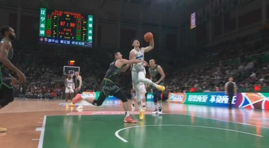 曾凡博起飛欲扣 付豪兇狠犯規將其拽倒 裁判回看后普通犯規
